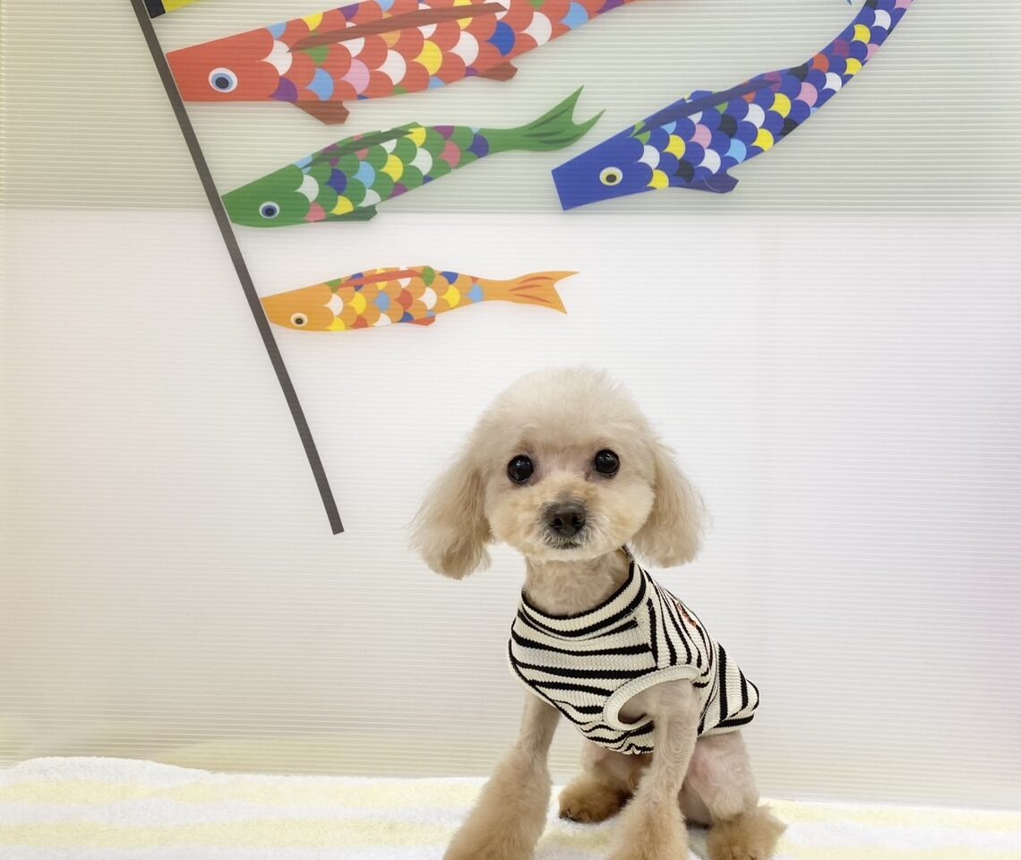 トイプードルのこむぎ君。 いつもトリミング&炭酸泉&オゾンシャワーに来てくれます。 防虫加工のお洋服もお買い上げ頂きました。 こむぎ君はいつまでもベビーフェイス。 ホームページを見た方や、お店でこむぎ君を見たお客様から 「こむぎ君カットにして下さい」ってオーダーを頂くこともよくあります(*^▽^*) こむぎ君、また来てね~。