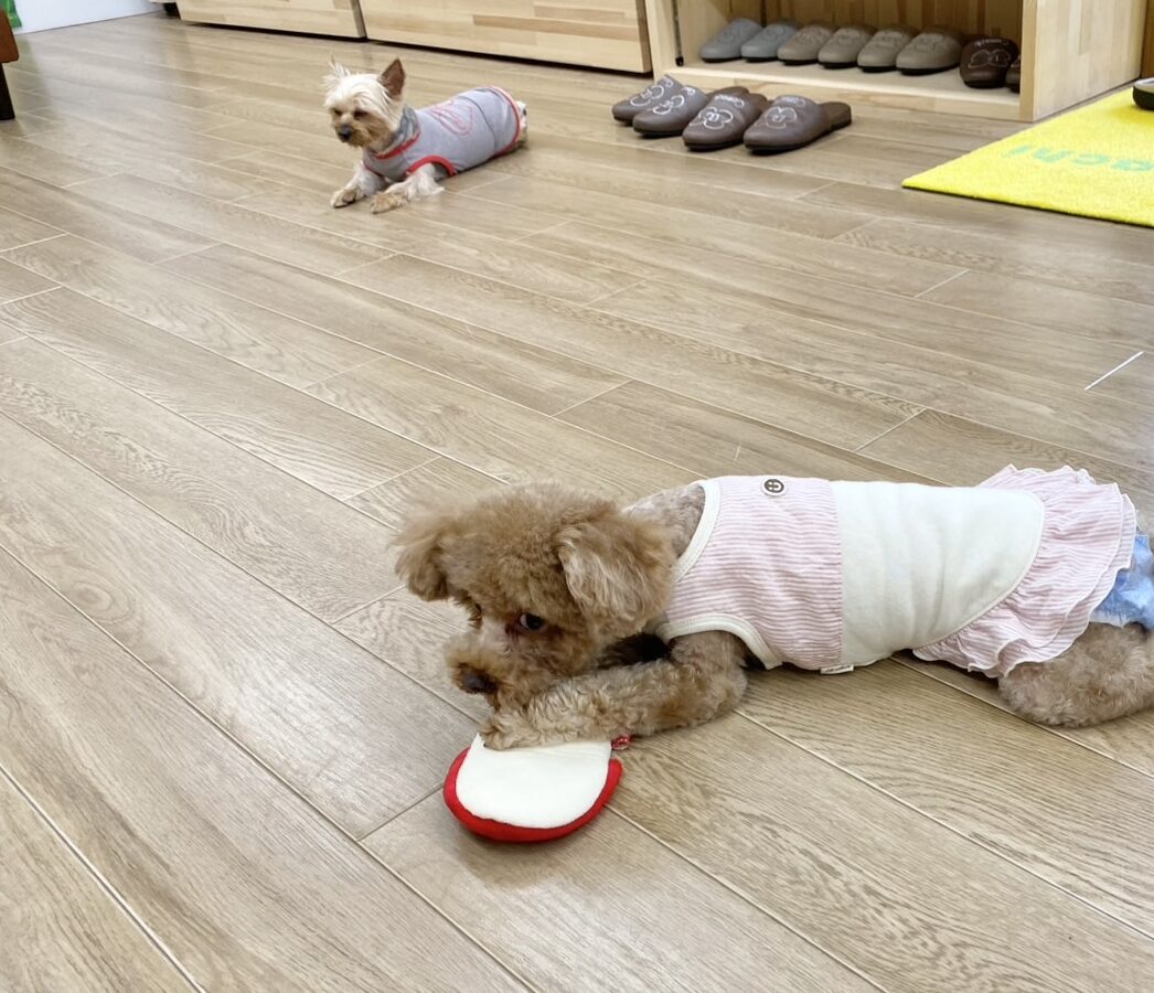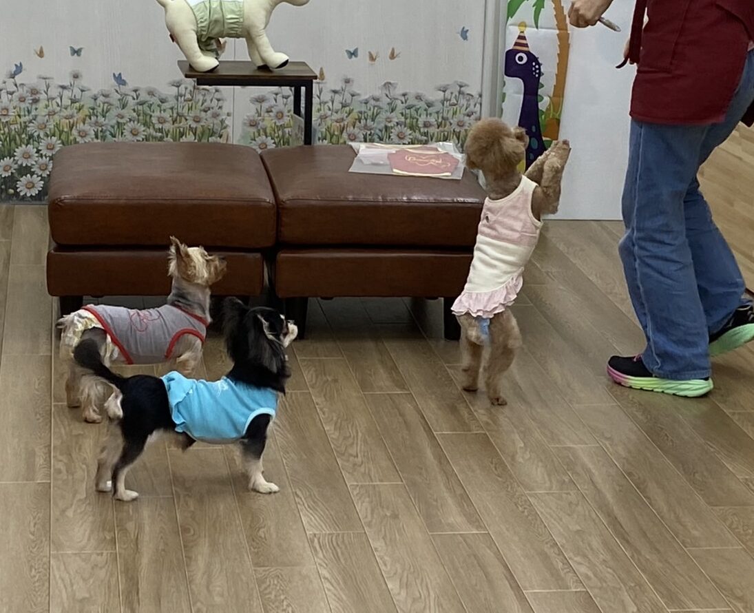 先輩犬のキラちゃんとめめちゃんよりも、グイグイ前に出てアピールします(*^▽^*)