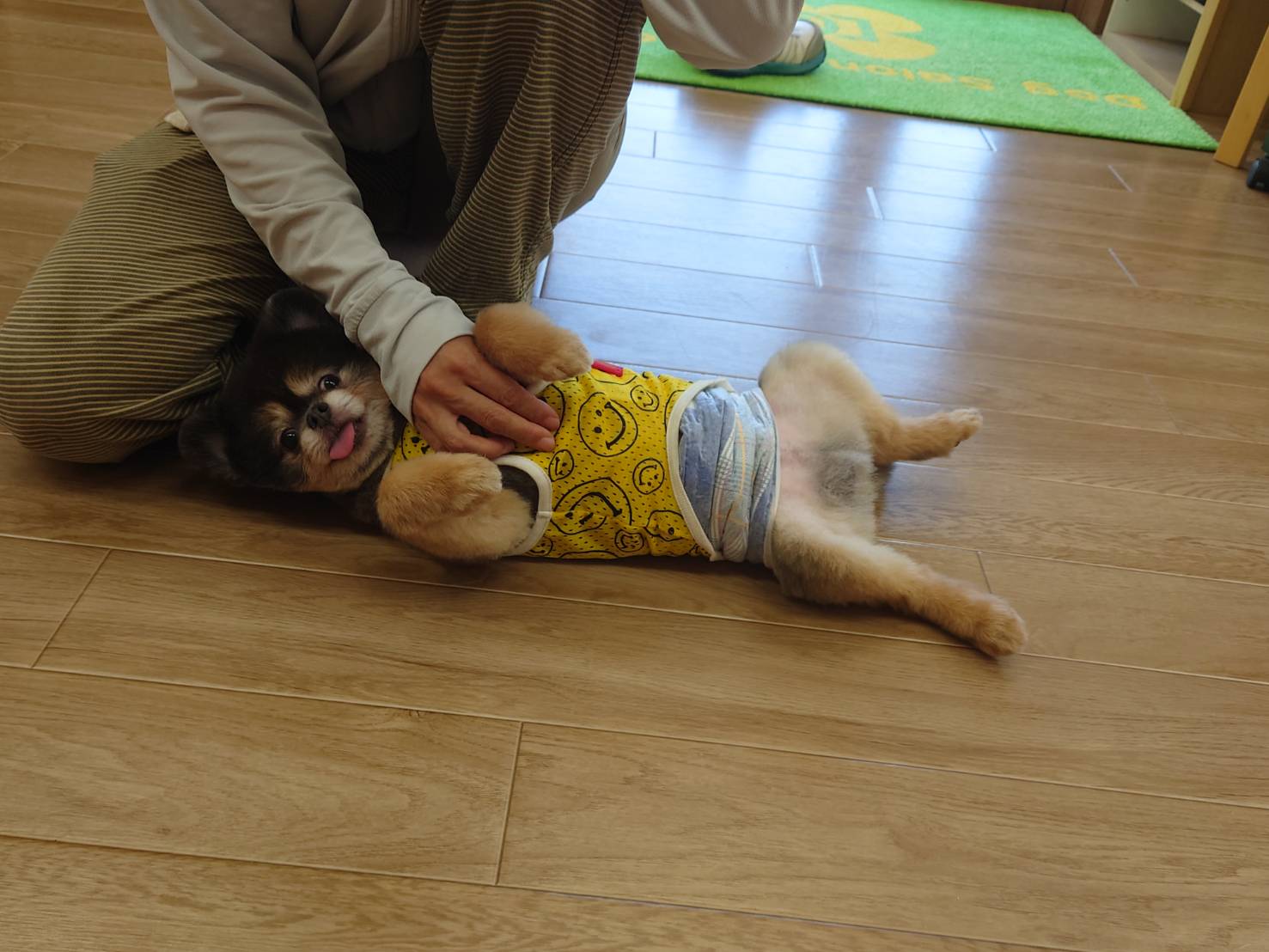 きなこちゃんともなかちゃんのママにお腹を撫でられ、グデ~ってなってる( *´艸`)