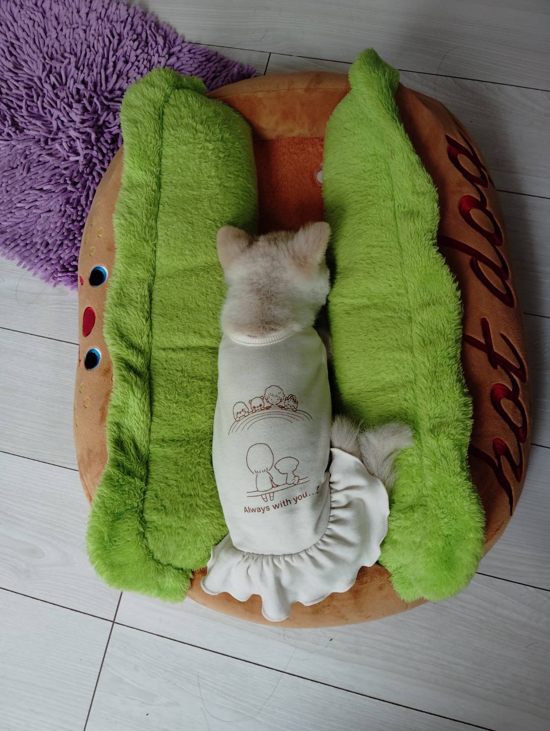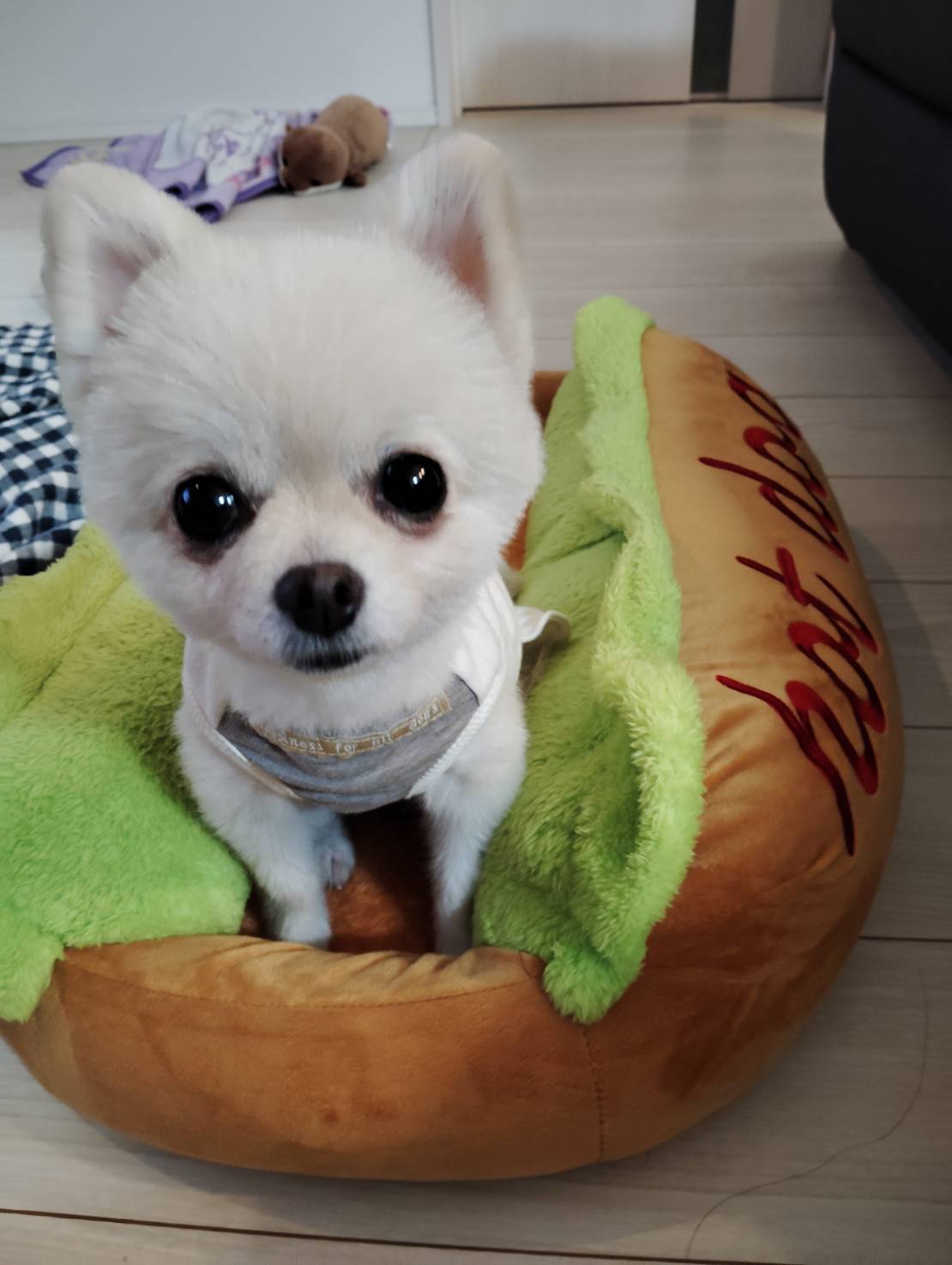 くま子さんのホットドッグベッドを使いこなしてます\(~o~)/