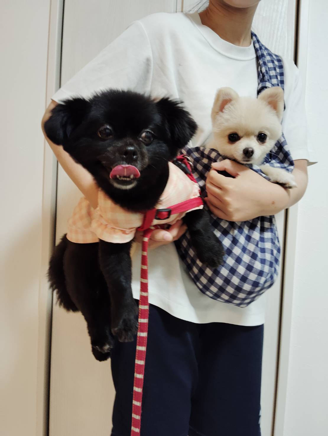 お散歩のときはまだくま子さんと歩くペースも違うのでポピーちゃんはスリングで。
