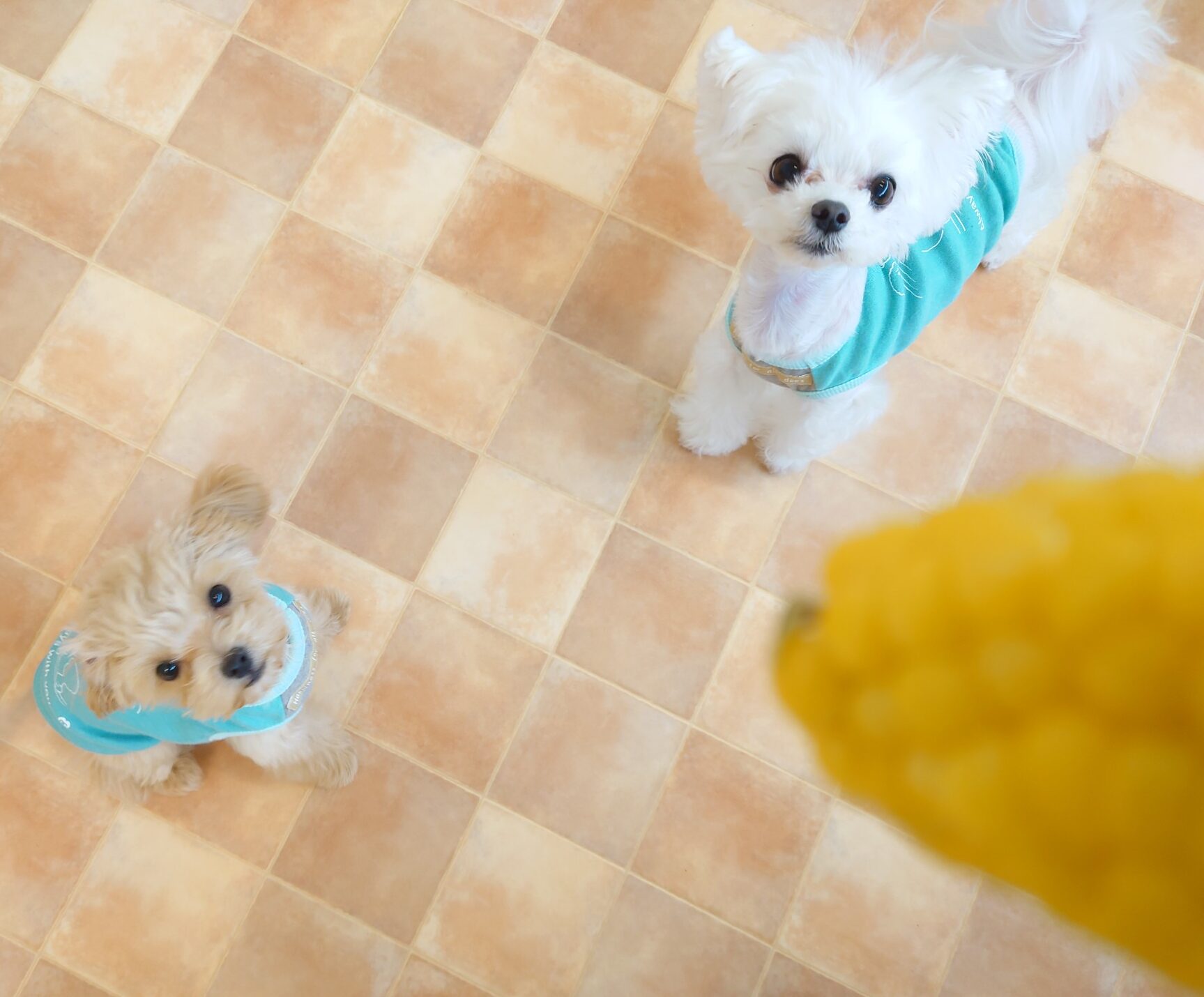 うちのワンズはとうもろこしがアレルギーなので、こっそり食べてたのに見つかった((+_+))