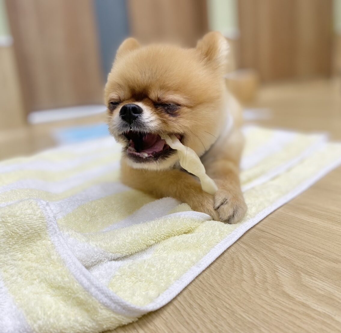 ※大きめのオヤツを与える時は目を離さないように注意しましょう。