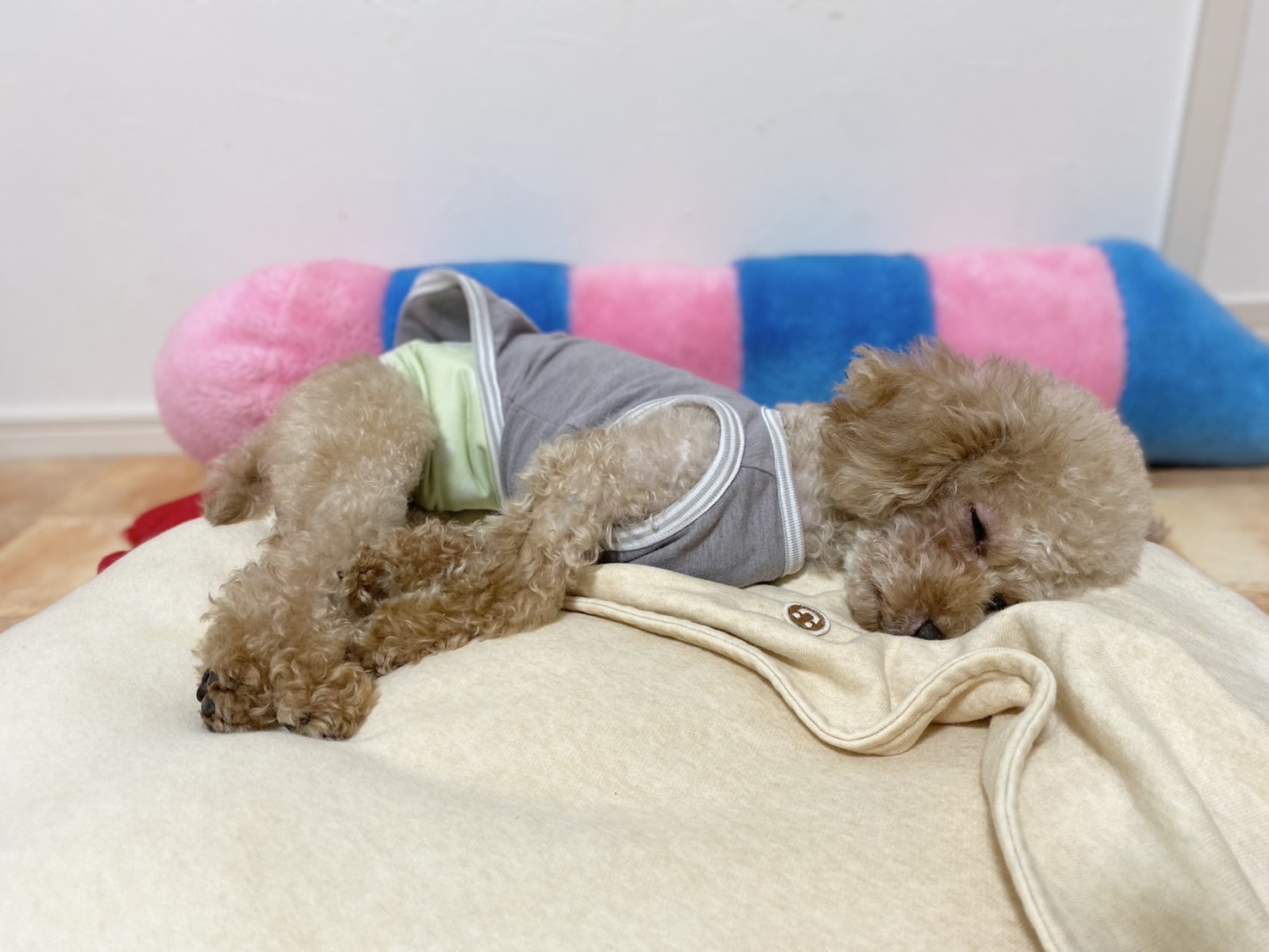 こんな風に、サークルの中に入らないで眠れるようになりました(*^▽^*)