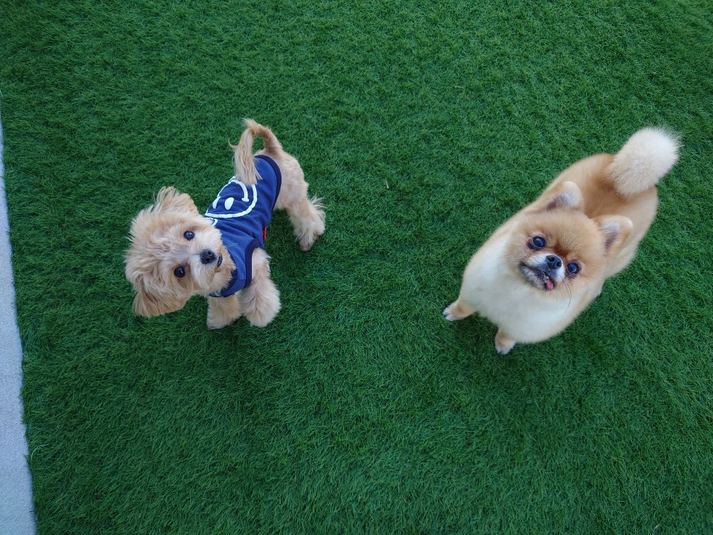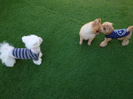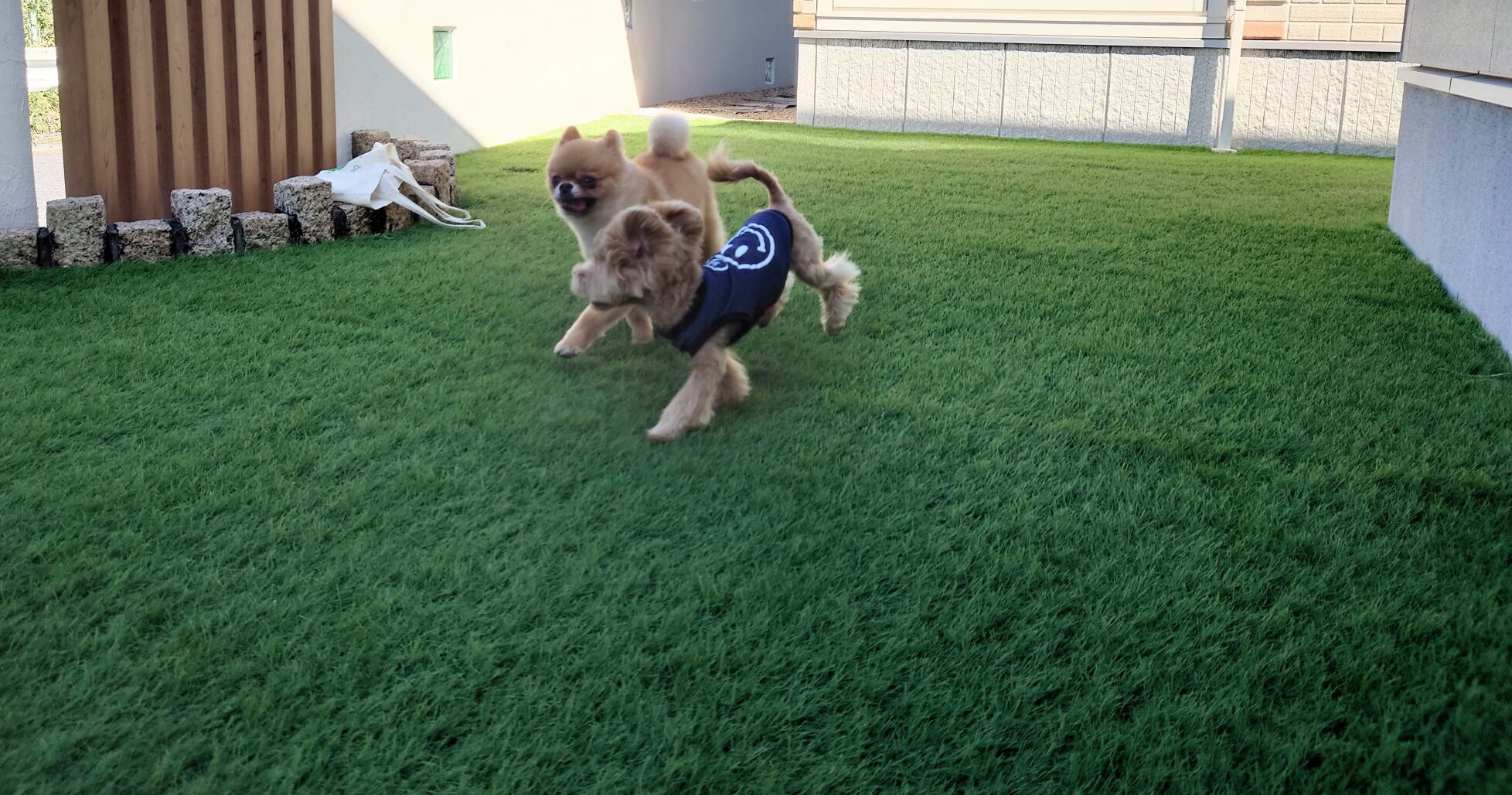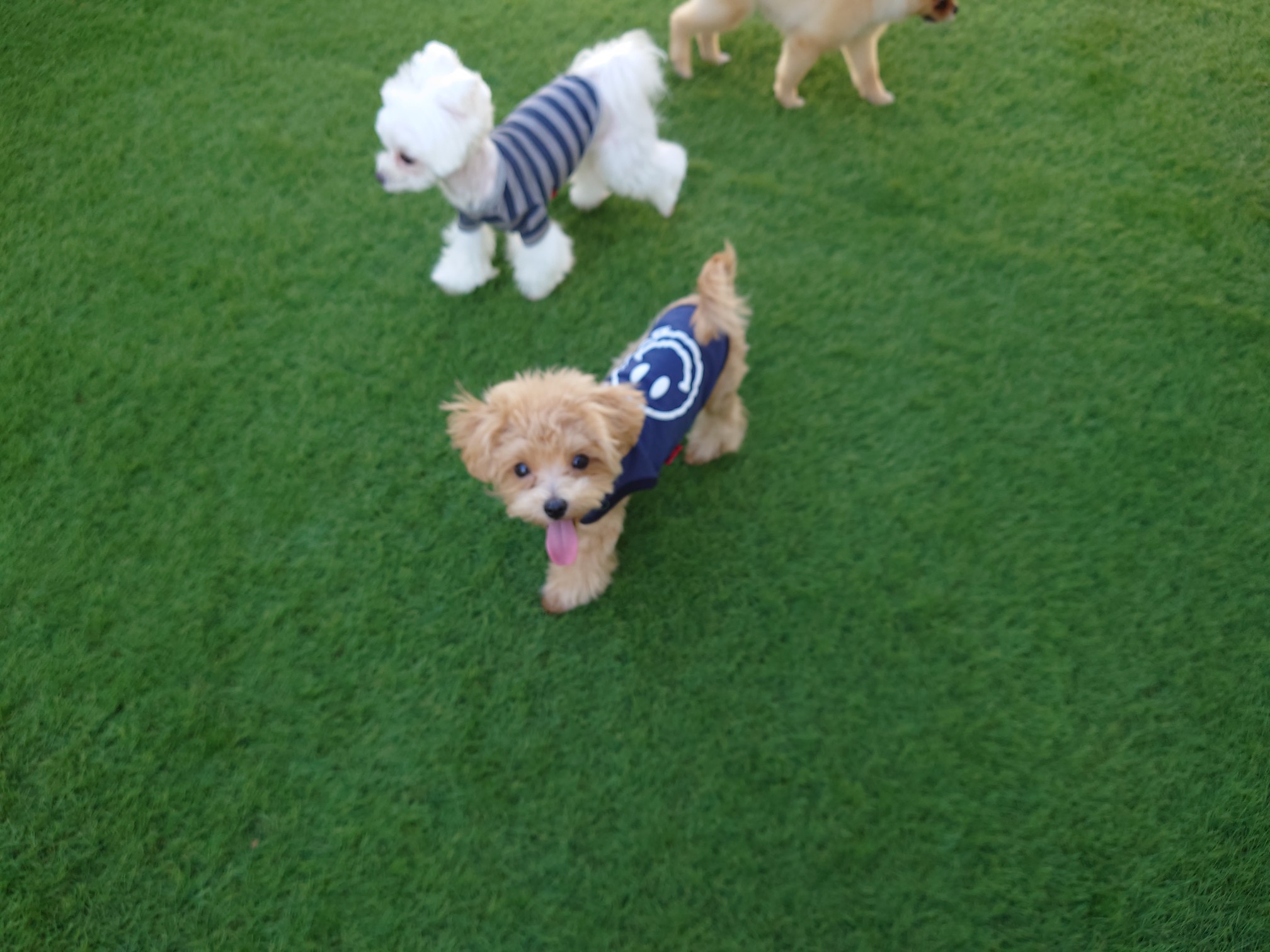 ぺこちゃんとこころ君は、初めてのお外遊びです☆