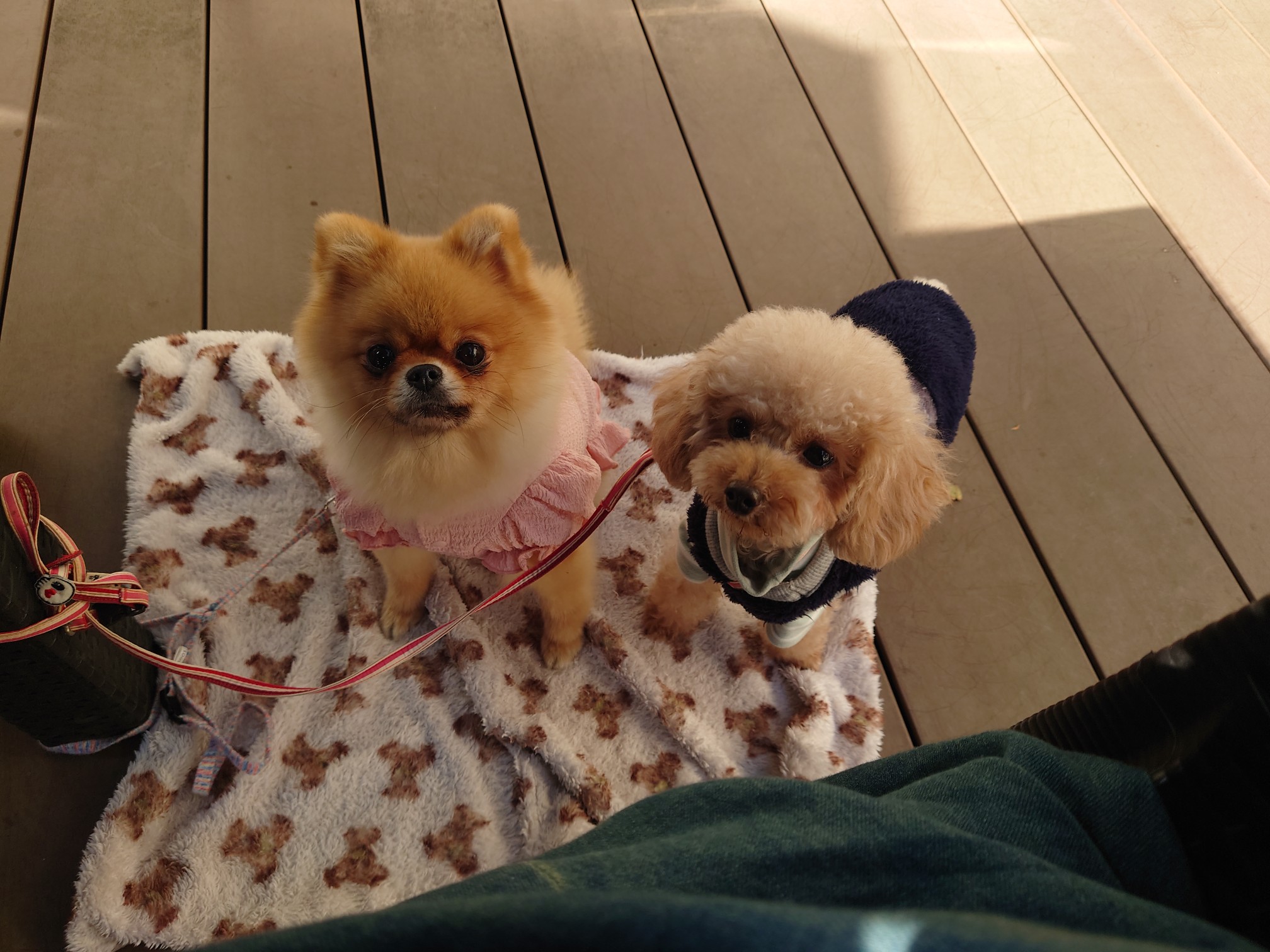 ぺこちゃんと真心くんはブランケットの上でお利口さんに出来たね☆