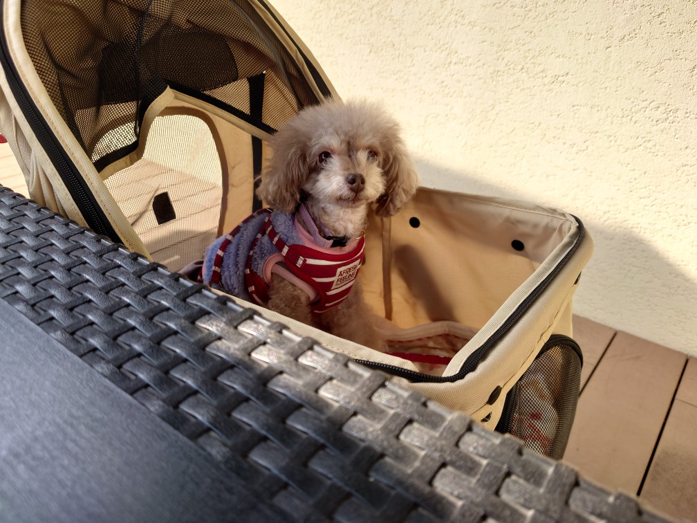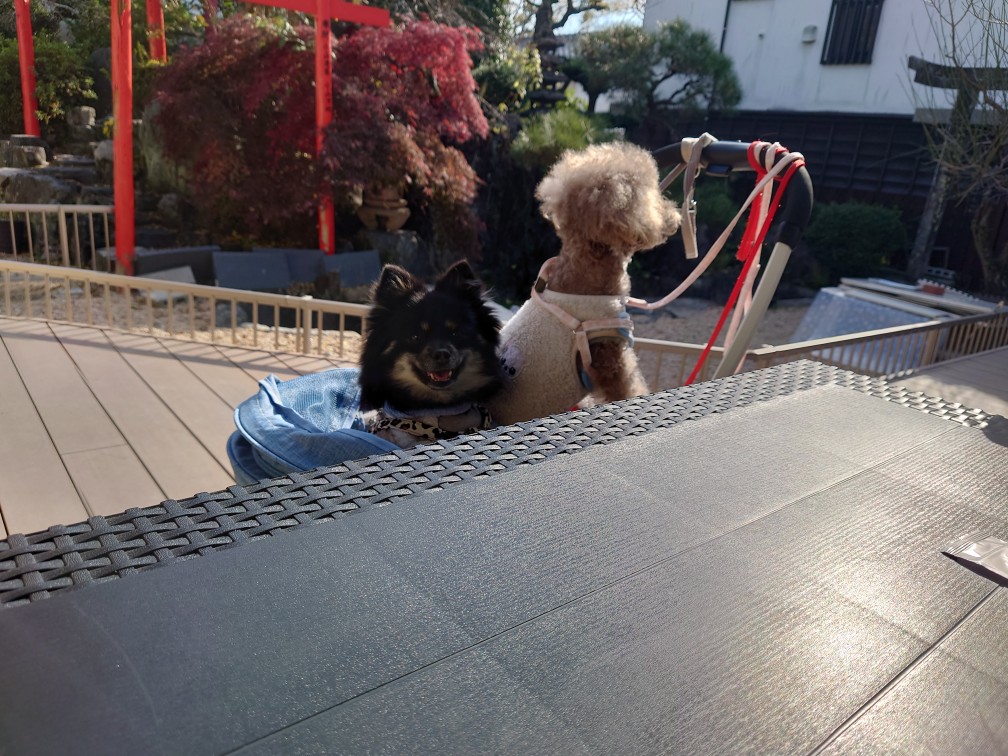 ジャスミンちゃんとはっちゃんもカートでお利口さん。