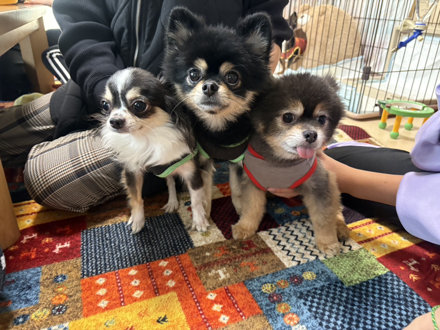 一緒に暮らす、ポメラニアンのあたる君とチワワのアン君。 従弟になる、テオ君とも楽しく過ごしています。
