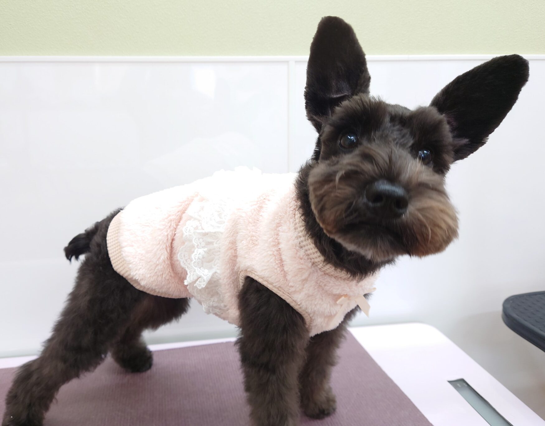 シュナウザーもビビちゃんは、フリル付きボアタンクのピンクをお買い上げ頂きました(*^▽^)