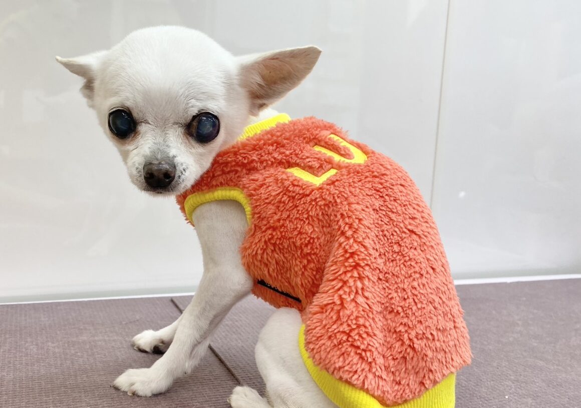 チワワの文茶くんはグレーのつなぎをお買い上げ頂きました(*^▽^*)