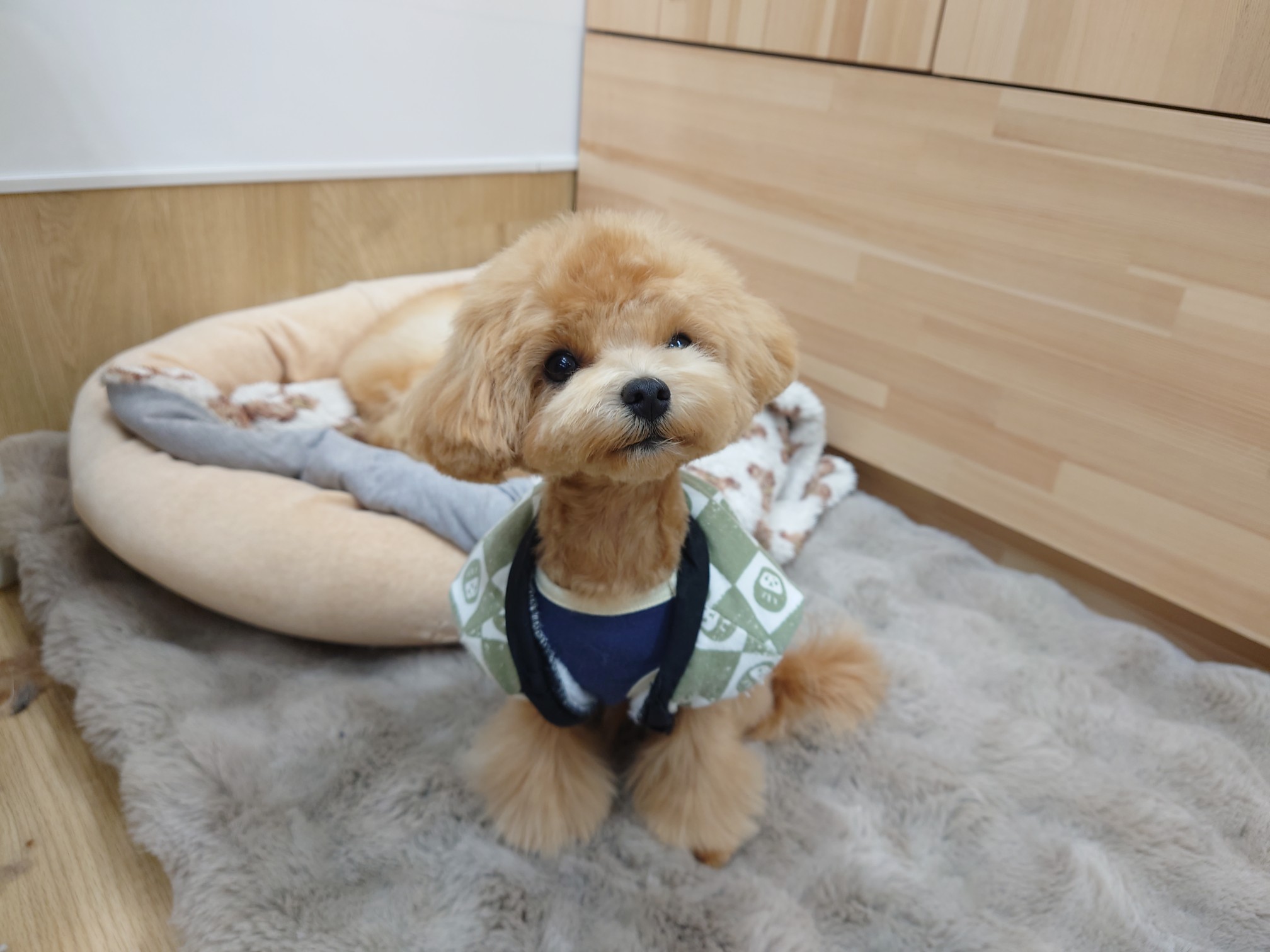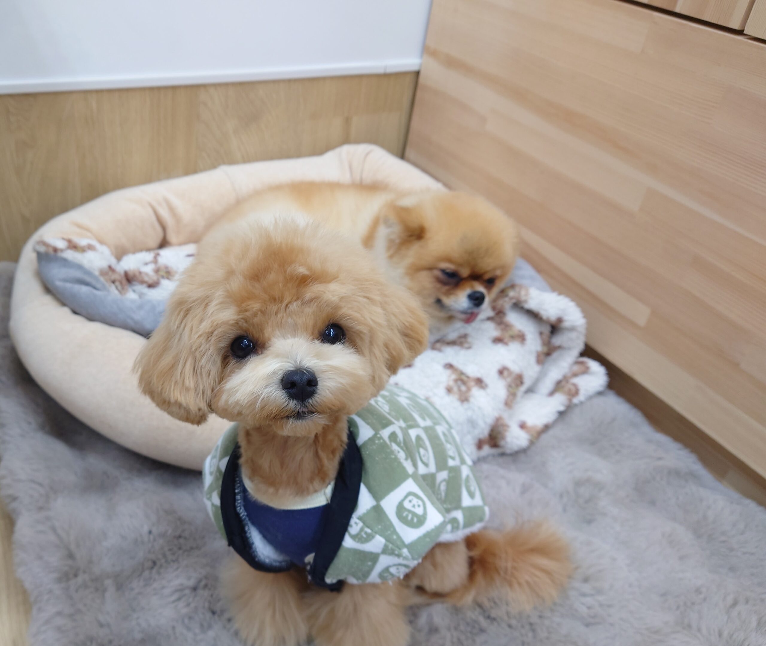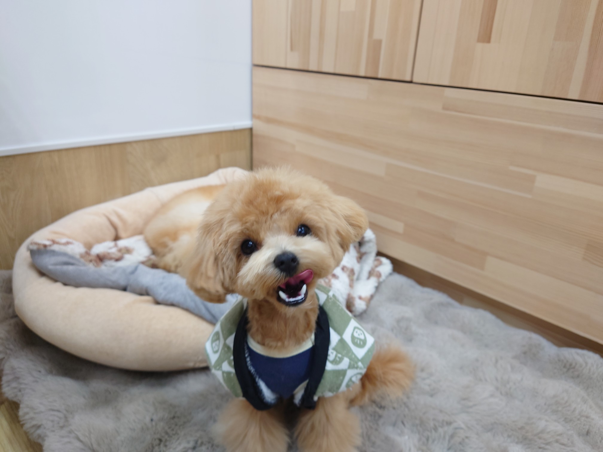 身体を冷やさないように、テラヘルツのお洋服の上にちゃんちゃんこを着てもらってます(*^▽^*)