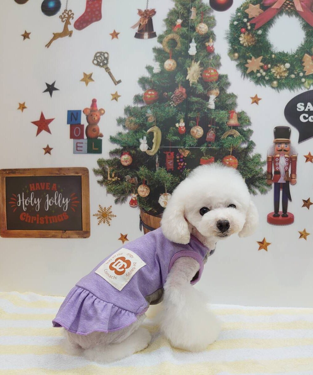 甜ちゃんは新作のコマチオリジナルのテラヘルツのお洋服、パープルのワンピース💛