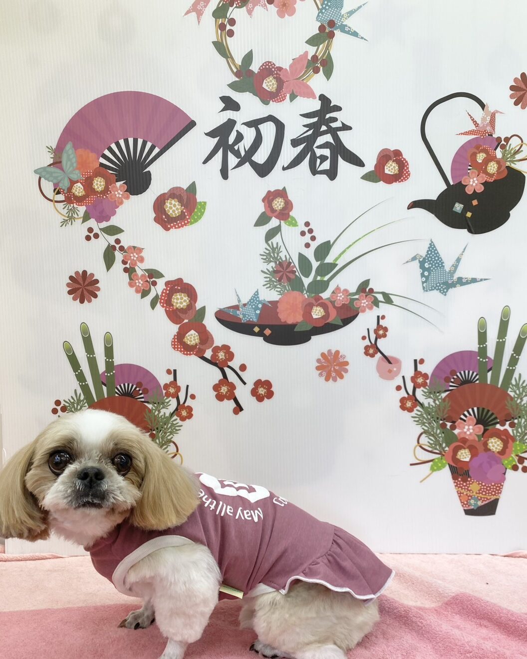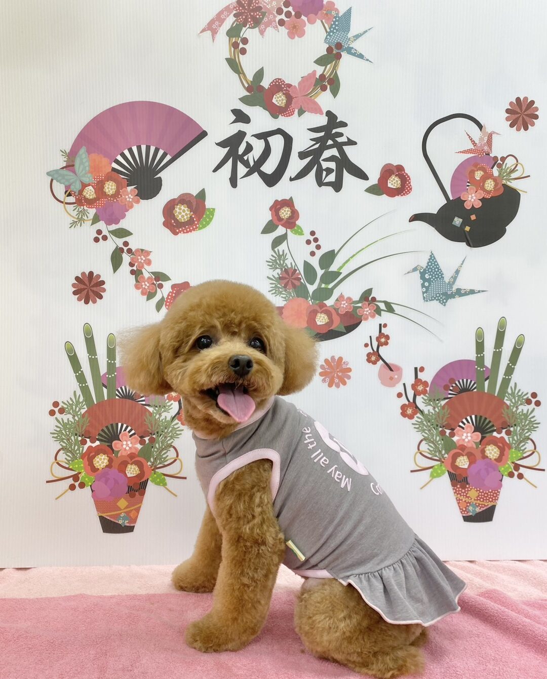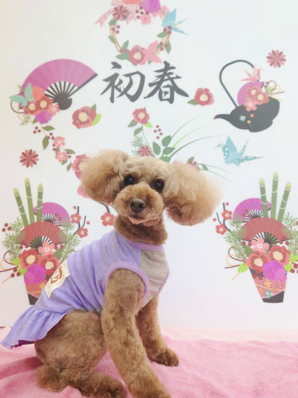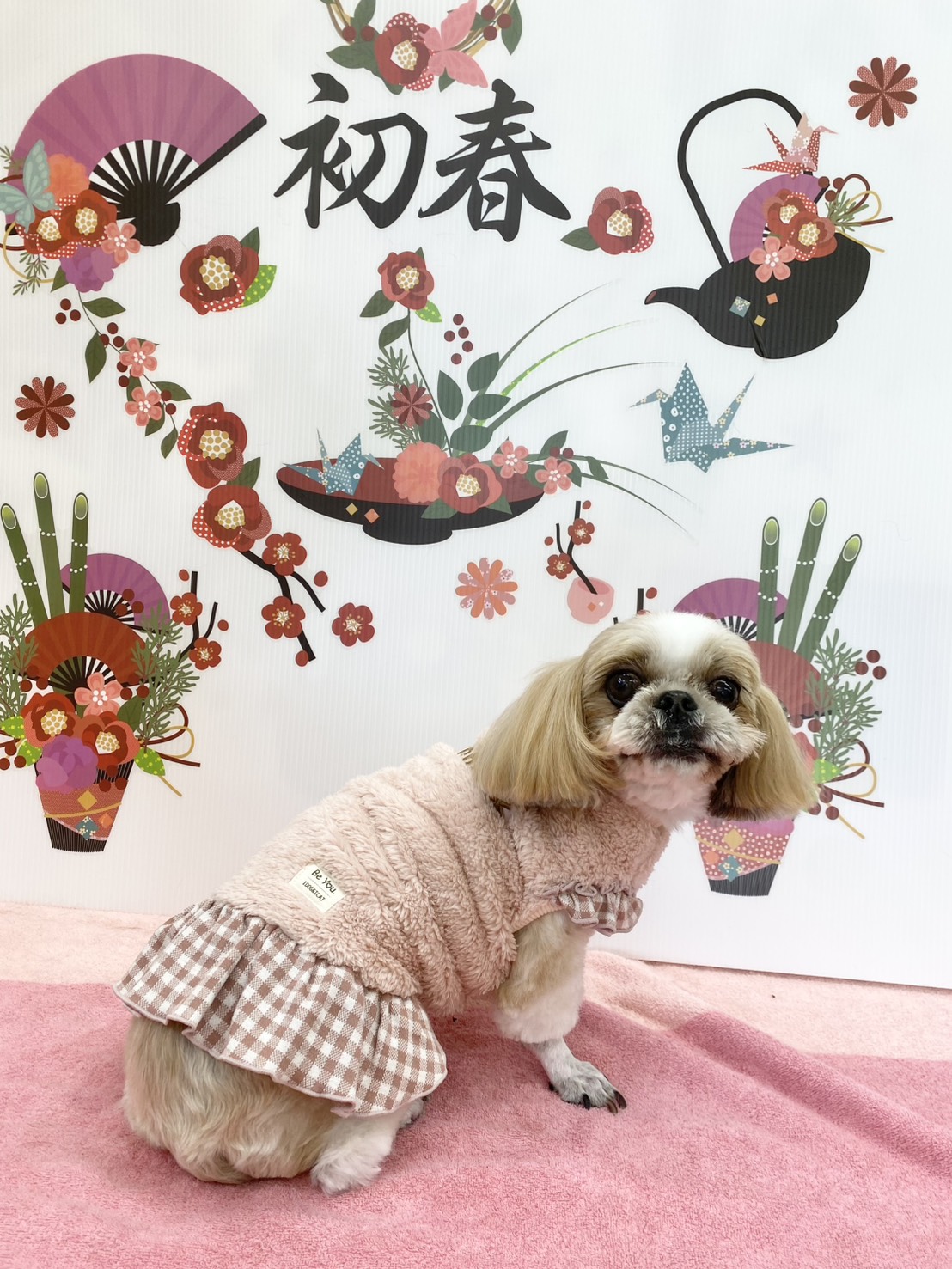 今日は、コマチオリジナルのテラヘルツのお洋服、ピンクのワンピースにしてくれました(*^▽^*)