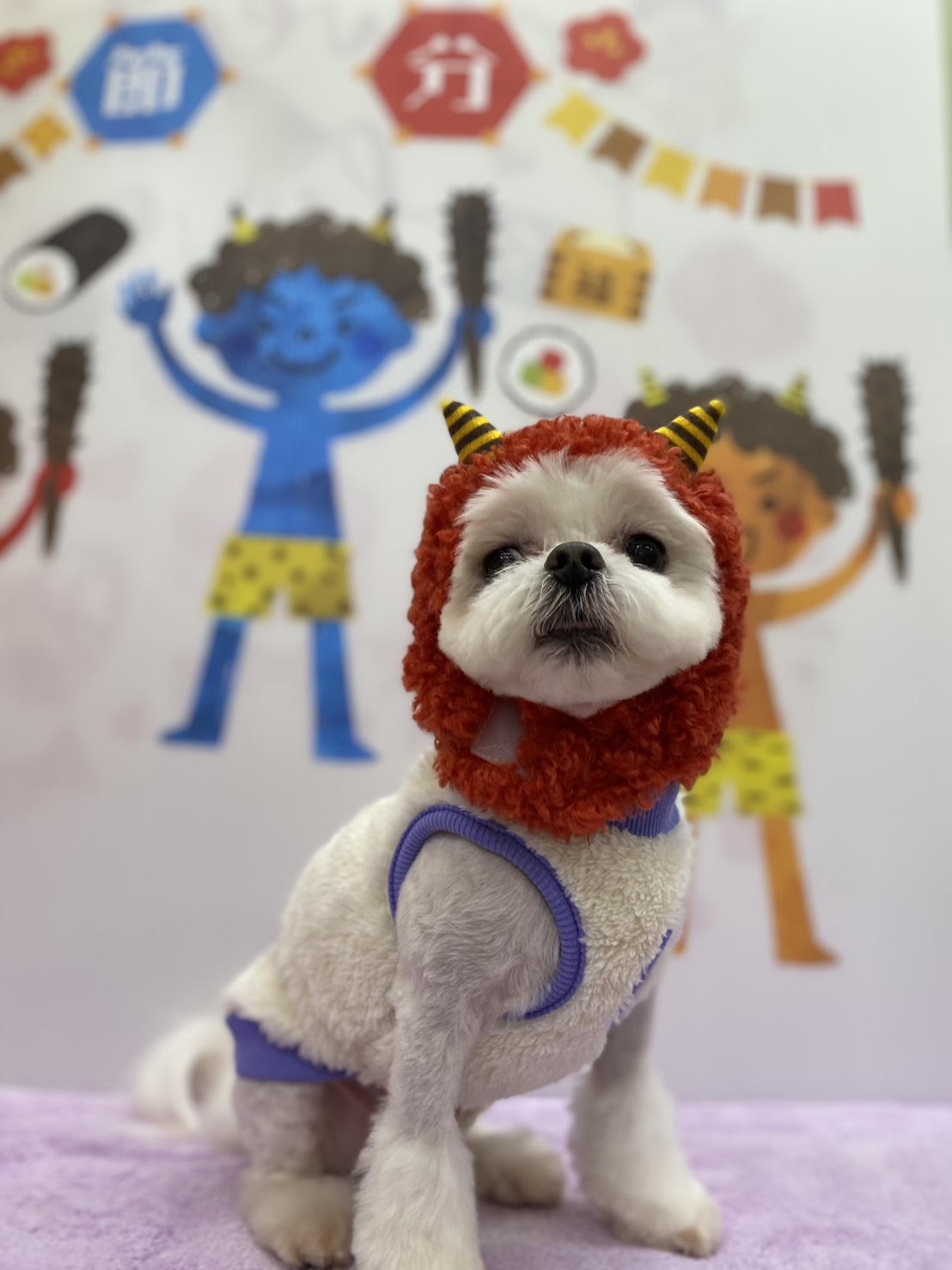 可愛い鬼さんです💛 かぶり物も抵抗なく、こんな可愛いお顔をしてくれました(#^^#)
