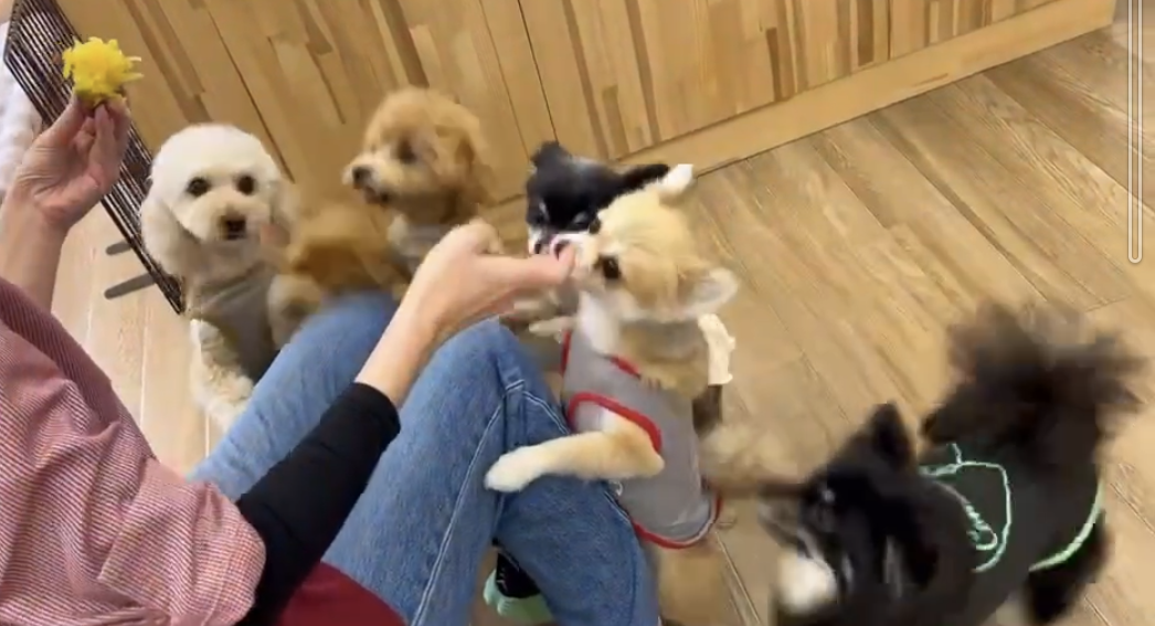 この人数にオヤツをあげるのは、なかなかテクニックが必要です(^_-)-☆