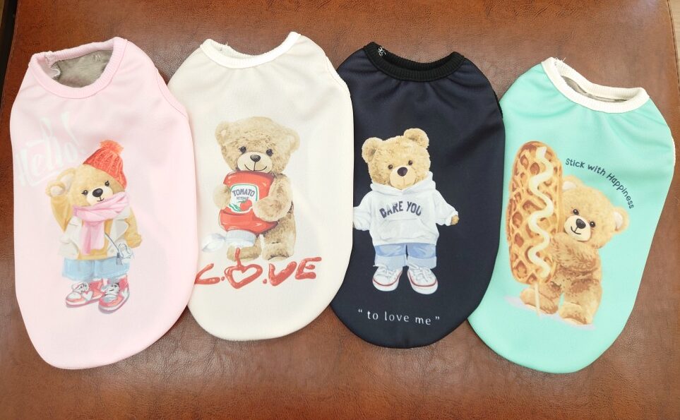 テラヘルツの生地を使用した「ワンコのリカバリーウェア」 可愛いクマさんシリーズが入荷しました(^^)/ ピンク、アイボリー、ブラック、グリーンの4色です。 少量の入荷となっております。 再注文可能ですので、ご希望の方はスタッフまでお問い合わせくださいね☆
