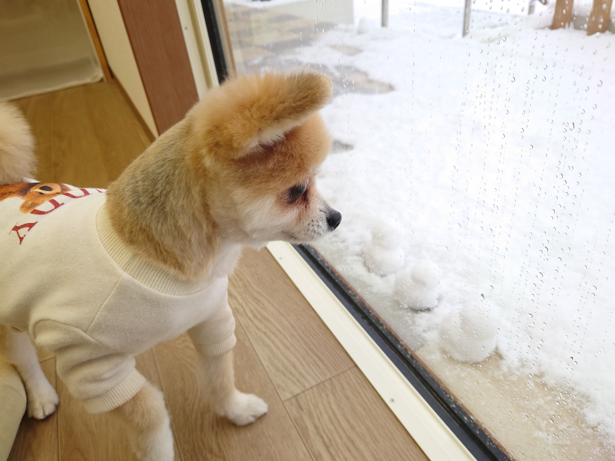 ミオちゃん、「雪、食べられるんかな~?!」って考えてるんじゃない?(*´ω`*)