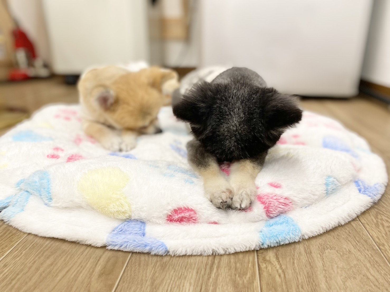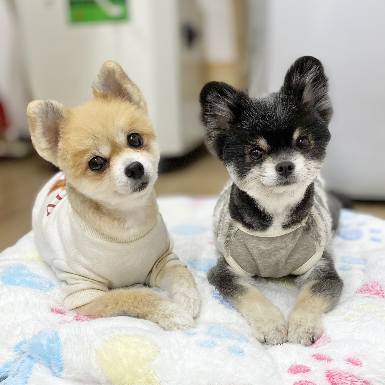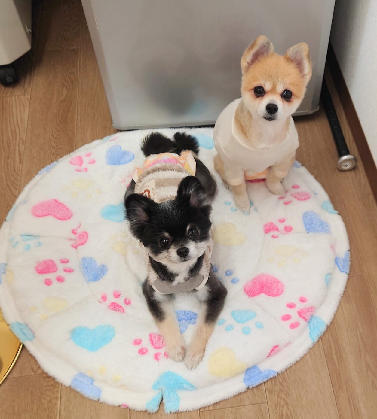 リタイヤ犬のひかるちゃんとミオちゃん。 珍しく、同じベッドで仲良く一緒にくつろいでました🎵🎵