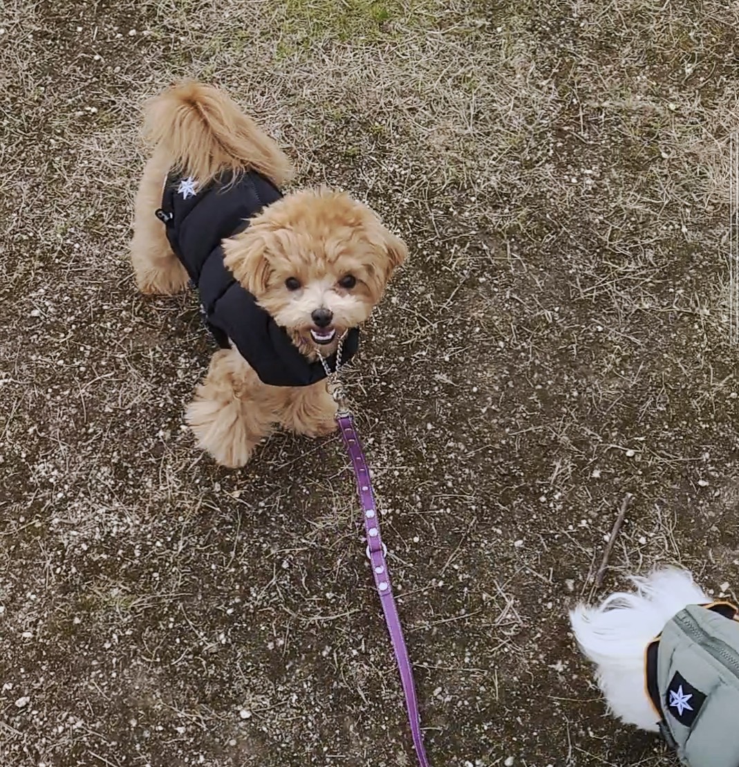たまに歩かせる時は、ノーリードでした。(危ないのでマネしないでね)