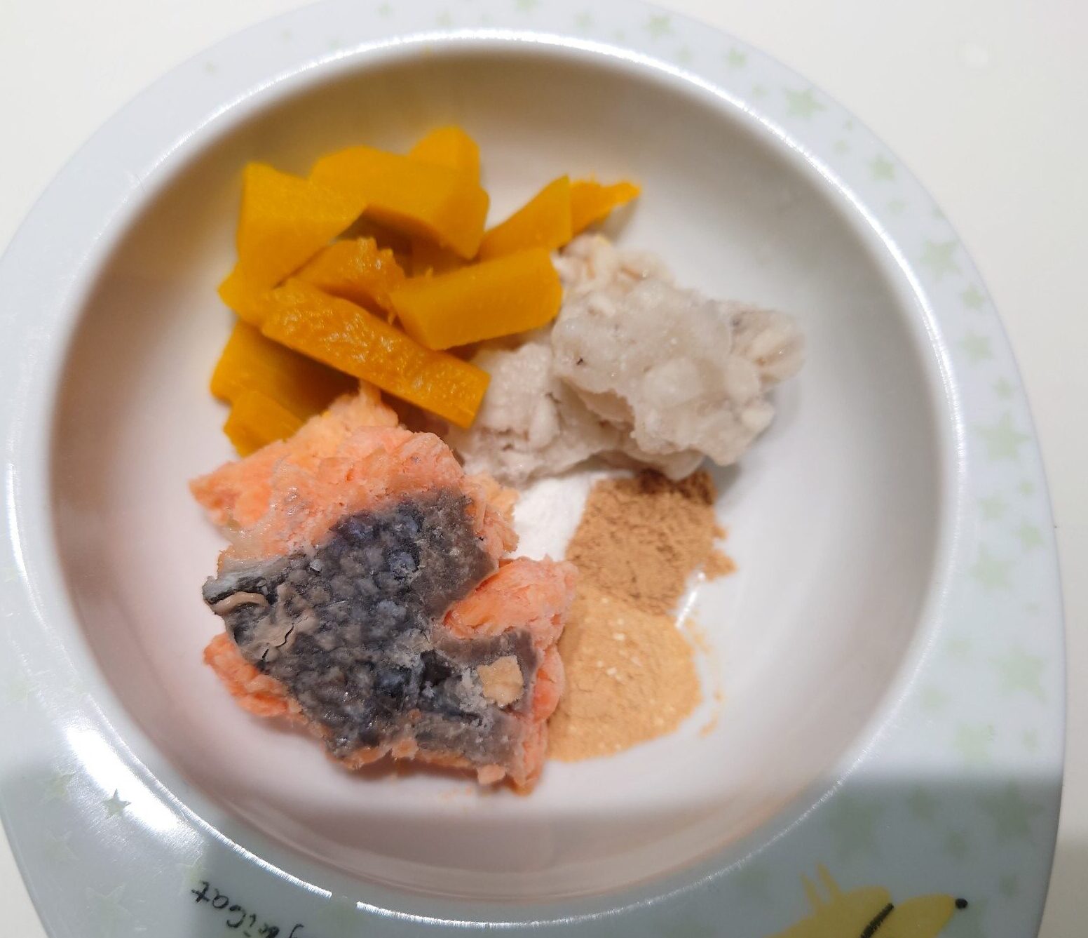 メインのタンパク質は、鮭、タラ、馬肉、小イワシを日替わりで使っています。