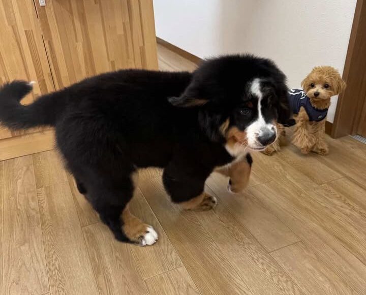 ワンパク王子も、初めて見る大きなワンコにタジタジでした(*^。^*)